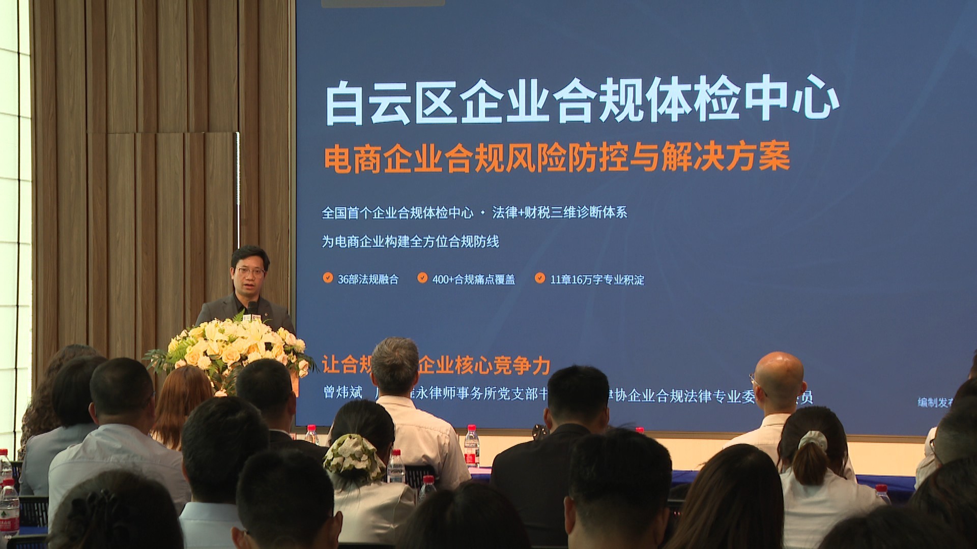 在当天的仪式现场,“百名律师进千企惠万家”巡回宣讲活动启动,2024-2025年度白云区优秀公益法律服务律师事务所、律师代表获颁发荣誉证书。广东谨然律师事务所、华商林李黎(前海·广州)联营律师事务所等12家律所,李伟军等30名律师获通报表扬。广州市调解协会专家曾颖祺围绕《直播电商监督管理办法》的实施影响及典型案例进行了深度解析,白云区企业合规体检中心负责人、律师曾炜斌向参会企业详细推介了“白云合规治理服务包”。